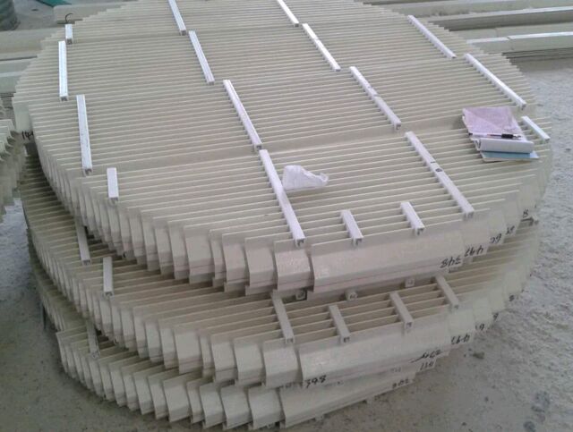 玻璃钢吸收塔除雾器的高度及选型相关知识玻璃钢除雾器是用来将脱硫后湿烟气中的细小液滴去除,保护下游设备免遭腐蚀和结垢。玻璃钢除雾器布置在吸收塔出口处,通常有两级组成,模块结构,可以方便的从吸收塔顶部吊出.